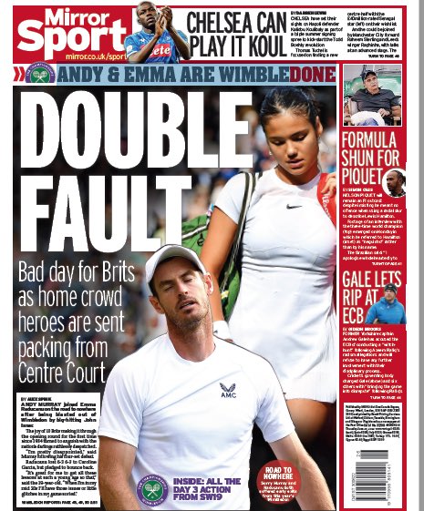 وعنونت صحيفة "ديلي ستار": "هزائم مبكرة للأوراق الرابحة البريطانية.. أمسية مؤلمة لأندي وإيما.. أندي وإيما يتحطمان".