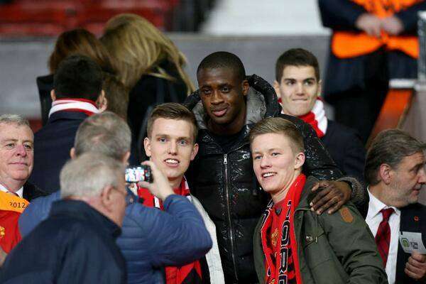 توريه يدعم أولمبياكوس اليوناني في مدرجات أولدترافورد