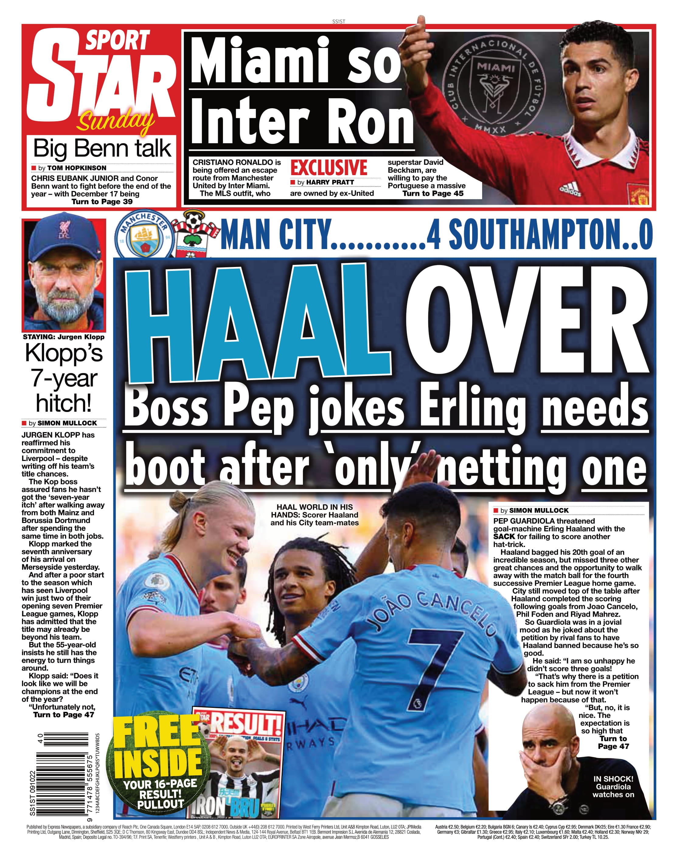 كما عنونت "ديلي ستار": "بيب يمزح بحاجة هالاند للاستبعاد، بسبب تسجيله هدف واحد فقط".
