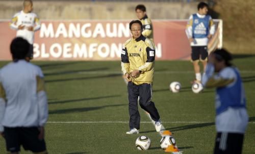 وشهد التمرين الأول للمنتخب الياباني في بلومفونتين حضور رئيس الإتحاد الياباني السيد موتواكي إينوكاي من أجل مساندة المنتخب الياباني والذي يواجه ضغوطات إعلامية بسبب نتائجه السلبية في المباريات الودية التي تسبق مواجهة منتخب الكاميرون .
