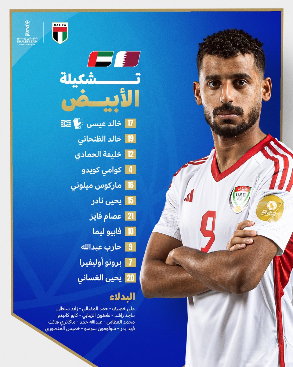 تشكيل الإمارات أمام قطر في كأس الخليج العربي خليجي 26