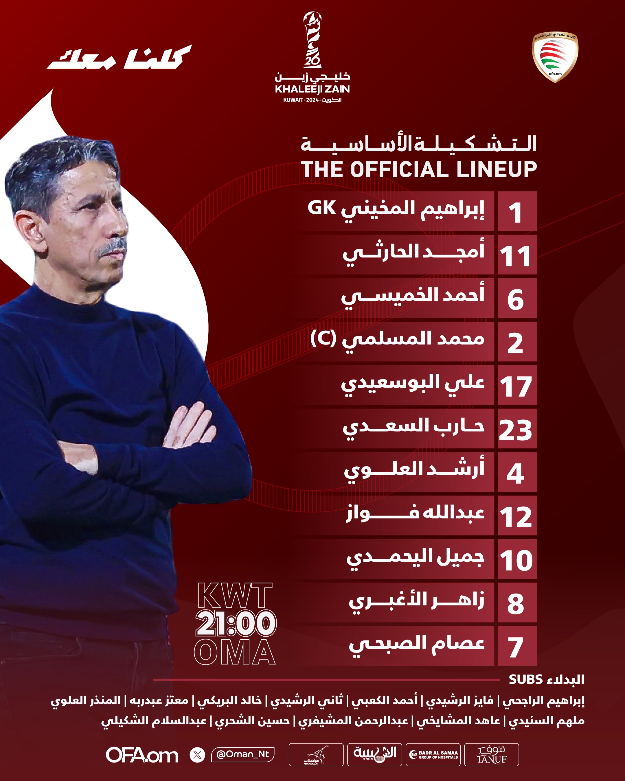 تشكيل عمان أمام الكويت في افتتاح كأس الخليج العربي خليجي 26