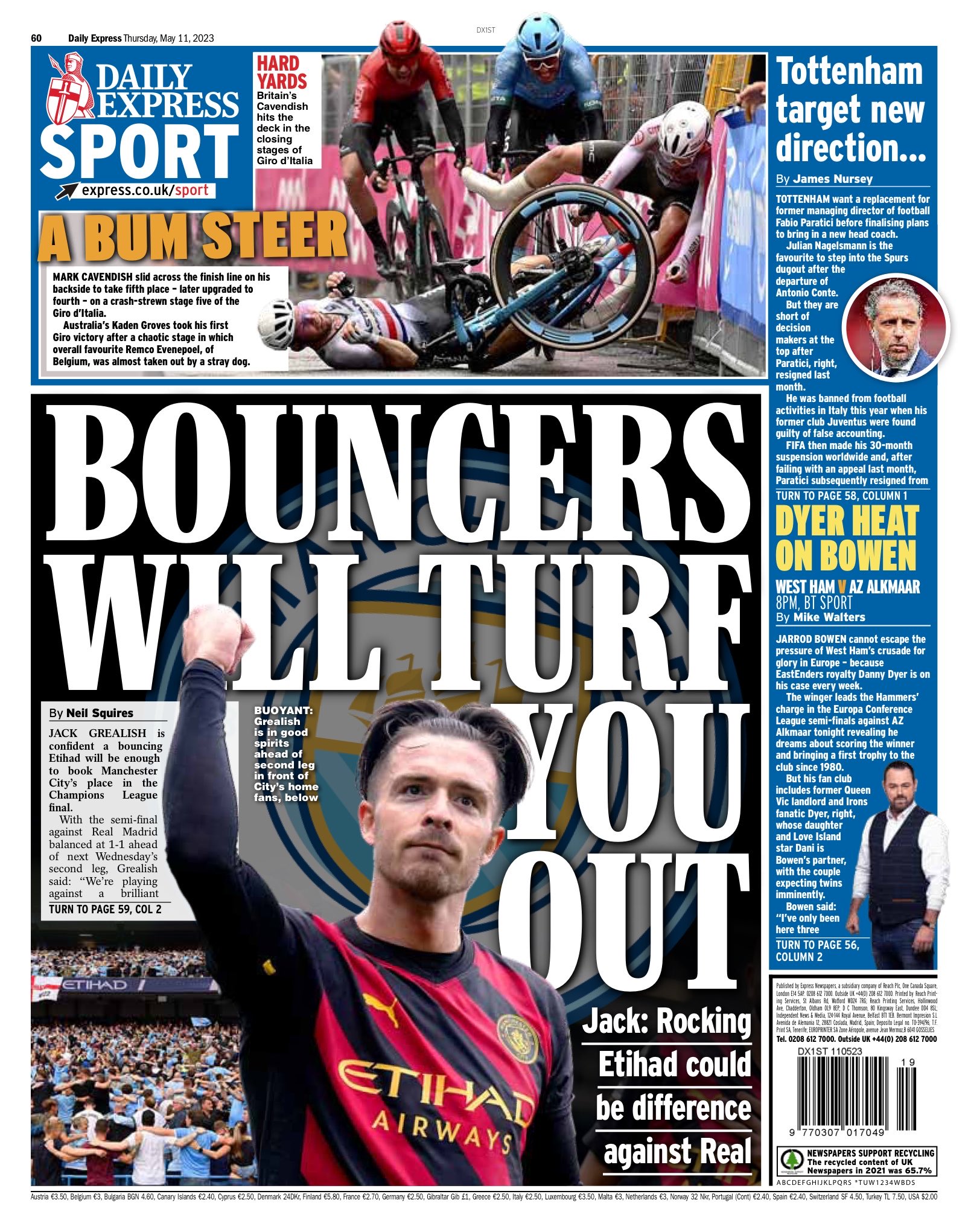أما صحيفة "ديلي ستار" فعنونت: "صانع الثلاثية.. جاك يخبر الريال بأنهم لن يوقفوا السيتي".