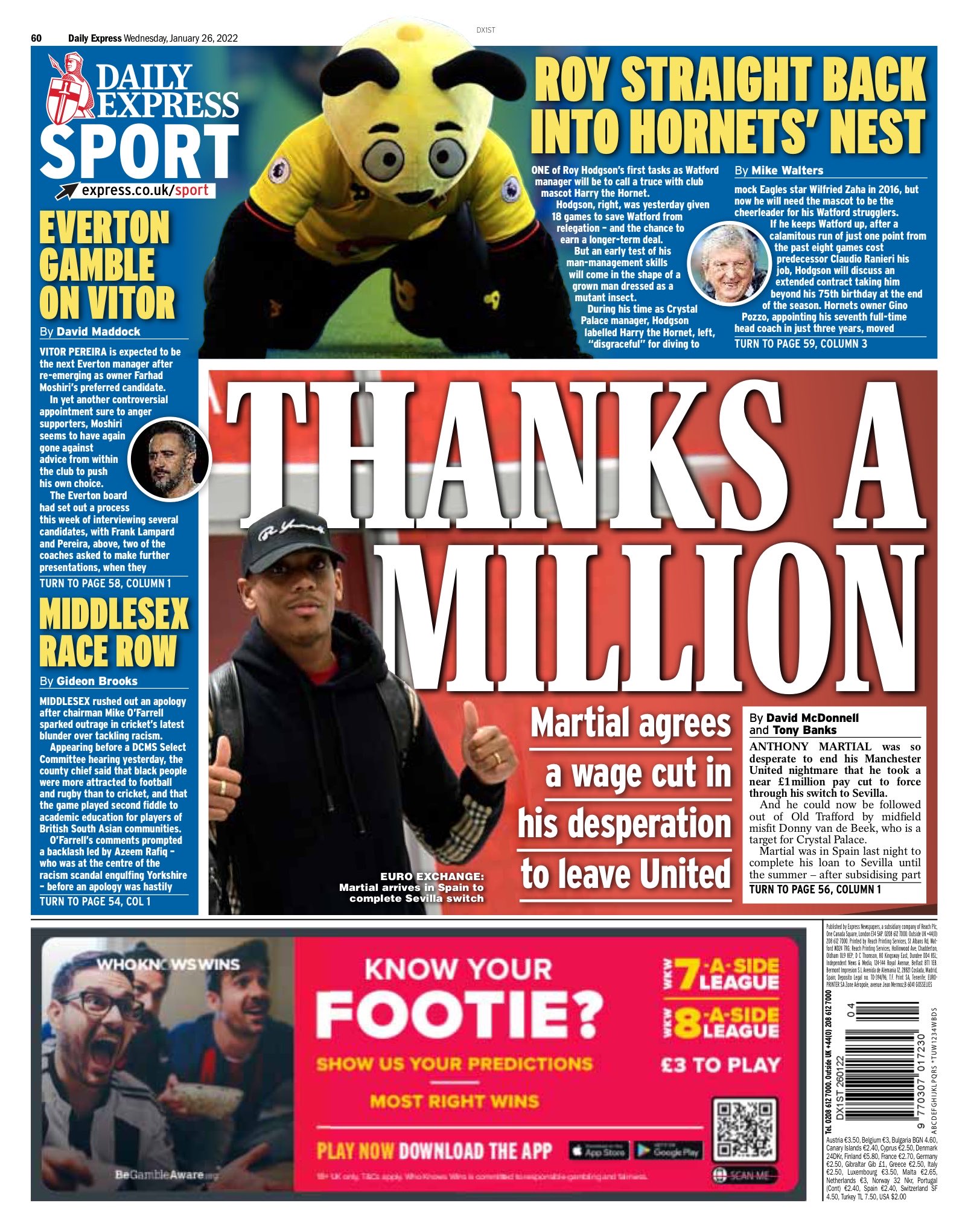 ومن جانبها عنونت "ديلي إكسبريس": "بفضل مليون.. مارسيال يوافق على تخفيض أجره لرغبته الشديدة بمغادرة اليونايتد".
