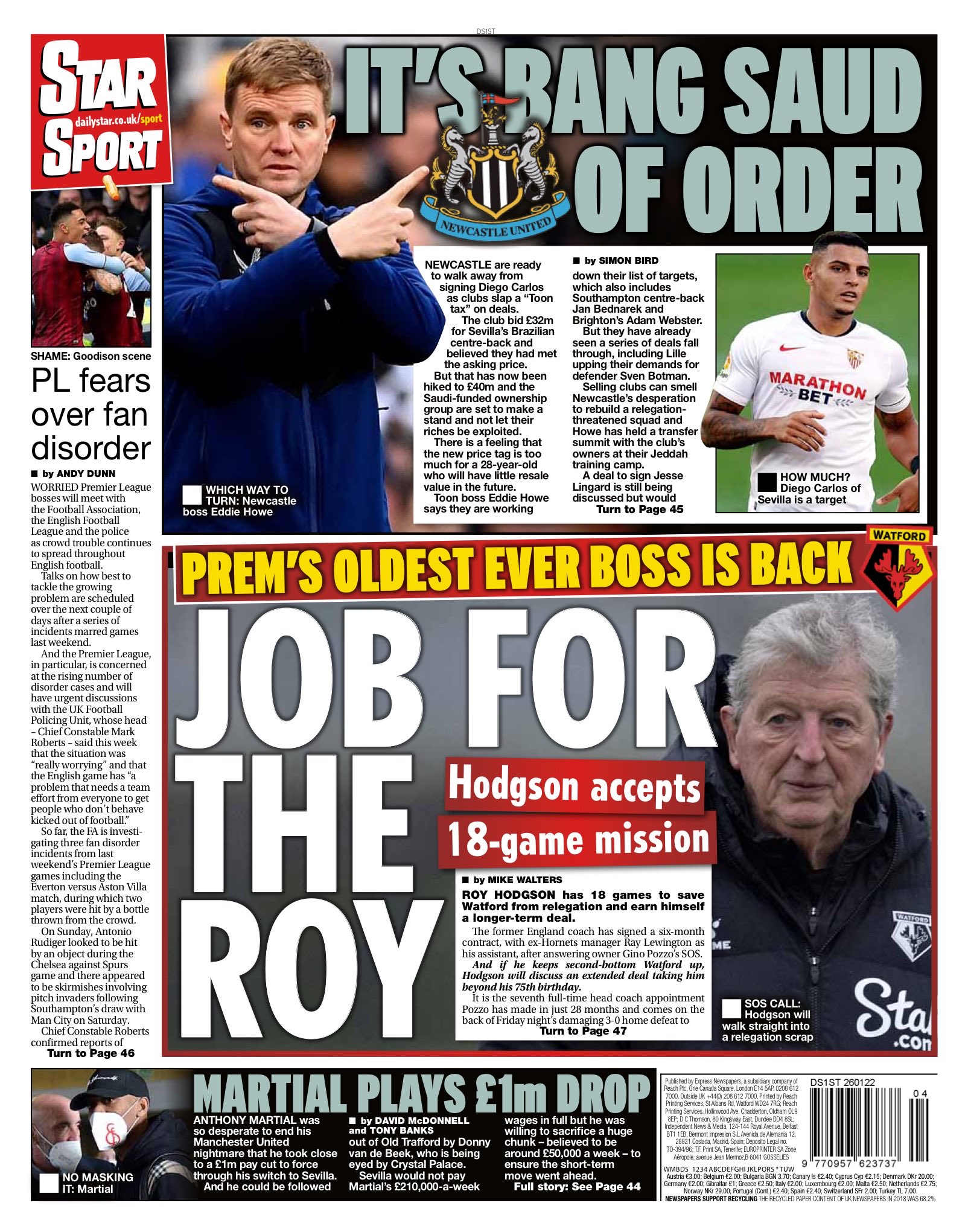 كما عنونت "ديلي ستار": "وظيفة لروي.. هودسون يقبل مهمة 18 مباراة".