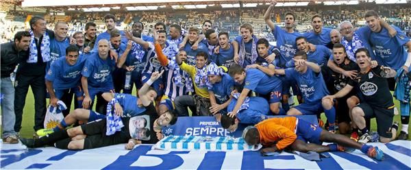 عاد فريق ديبورتيفو لاكورونيا إلى دوري الدرجة الأولى في إسبانيا لكرة القدم بعد فوزه على فريق خائين اليوم بهدف دون رد في الجولة قبل الأخيرة من دوري الدرجة الثانية، ليلحق بفريق إيبار.