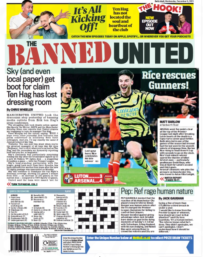 EPAاهتمت الصحف الإنجليزية الصادرة صباح اليوم الأربعاء، بالانتصار الدرامي الذي حققه آرسنال على حساب لوتون تاون بنتيجة (4-3) أمس، إلى جانب تسليط الضوء على دفاع بيب جوارديولا، مدرب مانشستر سيتي، عن لاعبيه بعد غضبهم من قرار حكم مباراة توتنهام هوتسبير الأخيرة.
