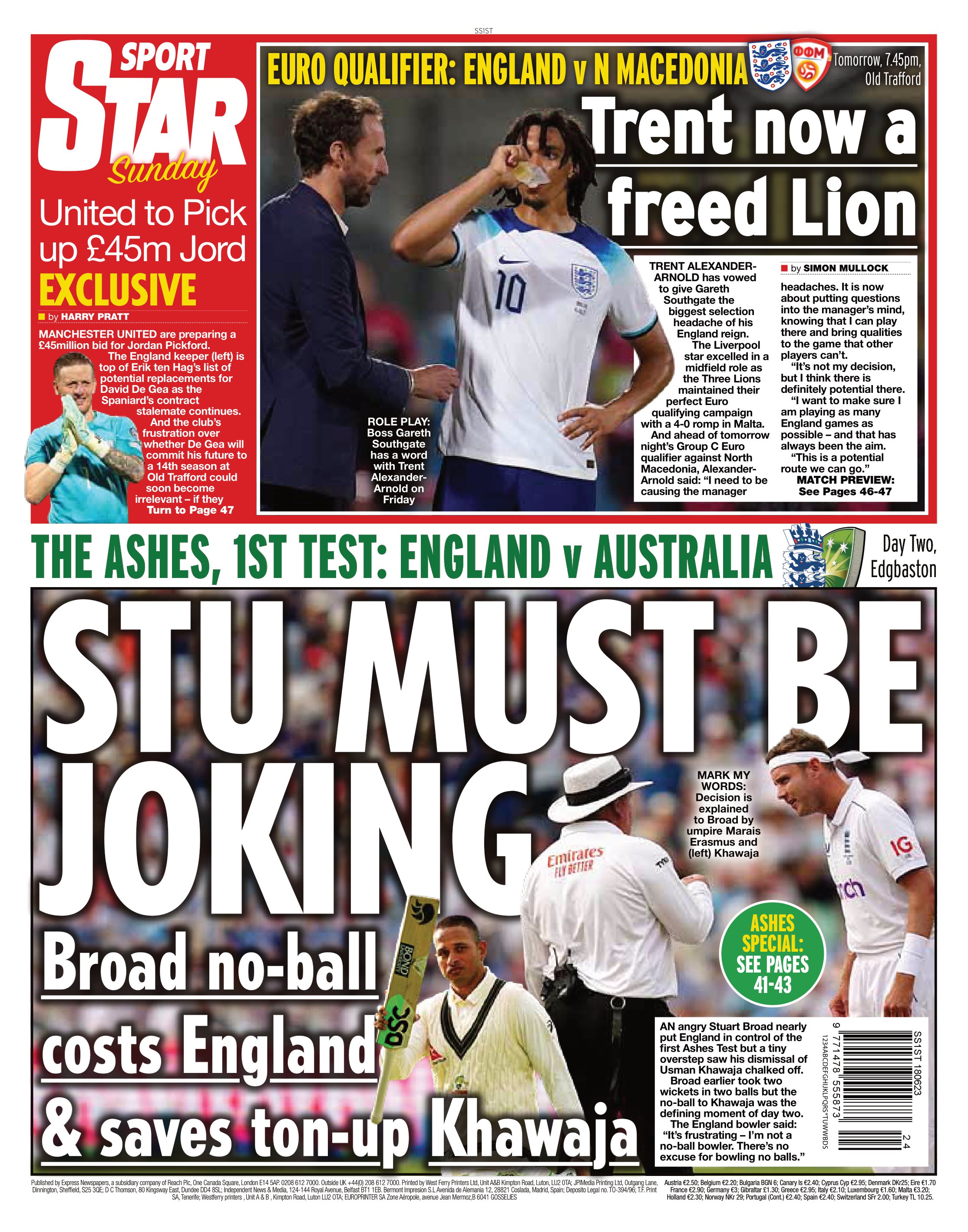 كما عنونت صحيفة "ديلي إكسبريس": "صداع ترينت بات مؤكدًا لساوثجيت".