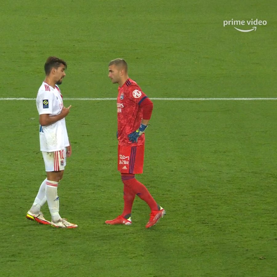 Reutersورط لوكاس باكيتا، نجم وسط أولمبيك ليون، زميله أنتوني لوبيز حارس مرمى الفريق خلال مواجهة باريس سان جيرمان، اليوم الأحد، في الجولة السادسة من الدوري الفرنسي.