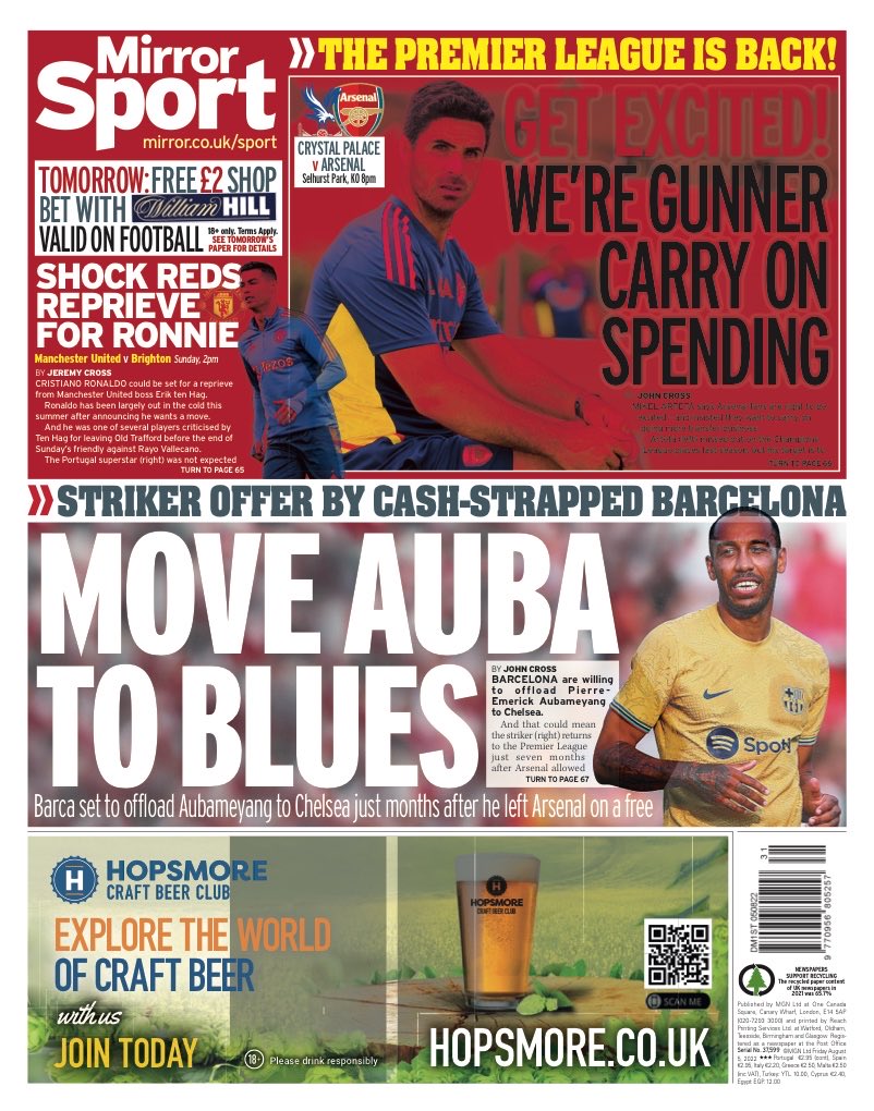 وفي الجانب كتبت: "أرتيتا الآن ينظر إلى الأعلى"، في إشارة إلى تصريحات ميكيل أرتيتا بأحقية جماهير آرسنال في الشعور بالإثارة قبل انطلاق الموسم.