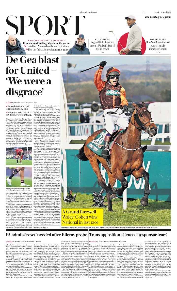وعنونت صحيفة "ديلي تليجراف": "دي خيا ينفجر غضبًا لليونايتد: "مستوانا مخزي".