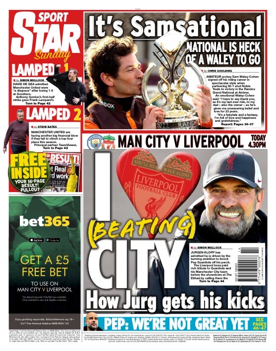 وبدورها عنونت "ديلي ستار": "أحب هزيمة السيتي"، في إشارة إلى تصريحات يورجن كلوب، مدرب ليفربول.