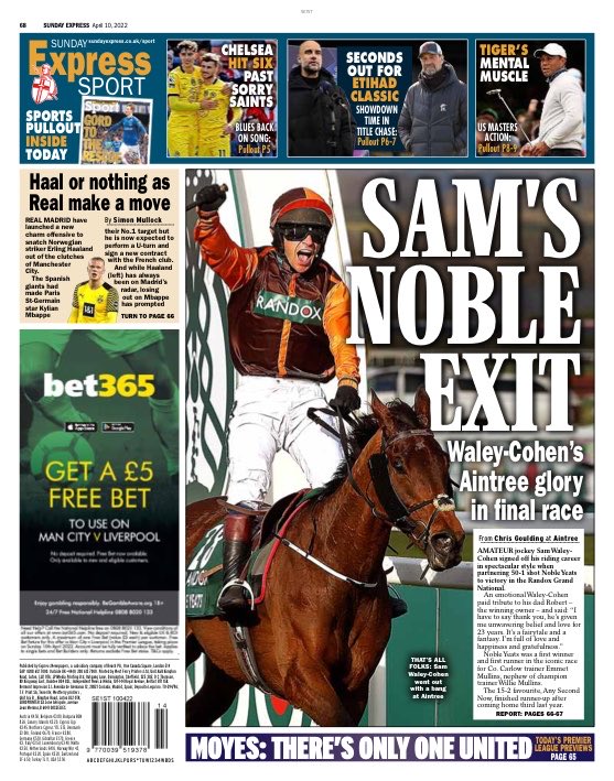 أما صحيفة "ديلي إكسبريس": "فكتبت" "الكل أو لا شيء مع تحرك الريال"، في إشارة إلى استهداف ريال مدريد التعاقد مع إيرلنج هالاند، مهاجم بوروسيا دورتموند، وخطفه من مانشستر سيتي.