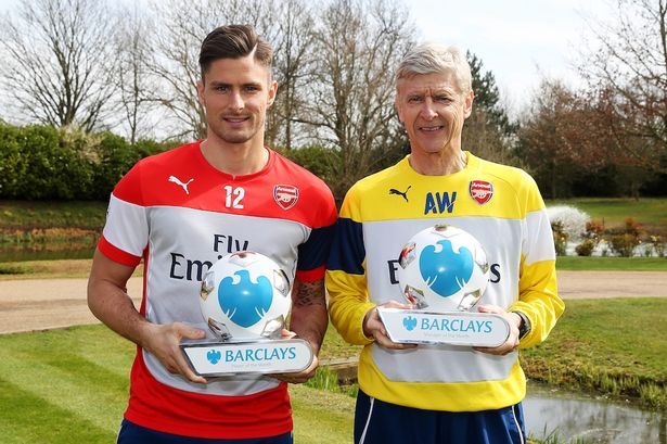 اختير ارسين فينجر مدرب ارسنال واوليفييه جيرو مهاجم الفريق اليوم الجمعة لنيل جائزة أفضل مدرب ولاعب في الدوري الانجليزي الممتاز لكرة القدم على الترتيب عن الشهر الماضي وهو ما يشكل دعما مزدوجا للفريق قبل يوم من مواجهة ضيفه ليفربول في مباراة يحتمل أن تكون حاسمة.