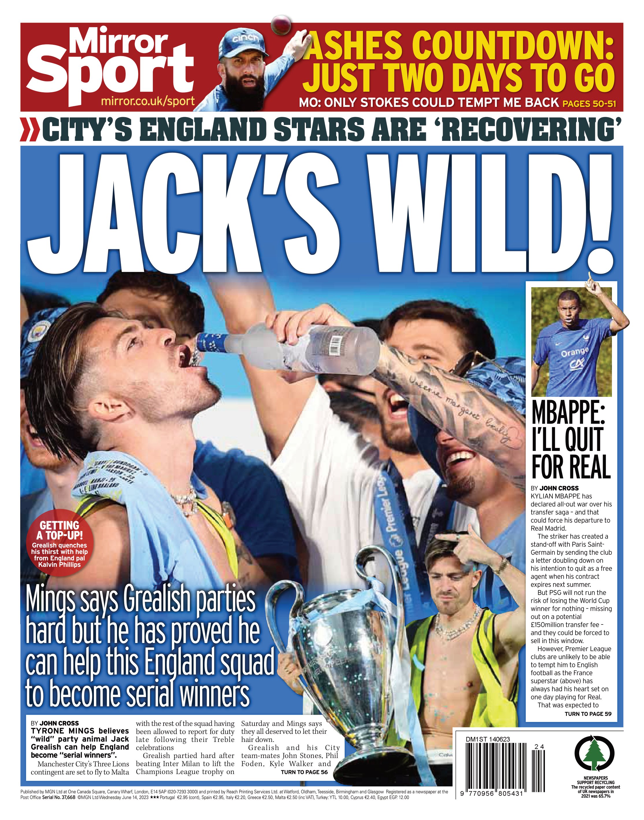 وعنونت صحيفة ميرور: "مينجز يقول إن جريليش احتفل بشدة لكنه أثبت قدرته على مساعدة قائمة إنجلترا في التحول إلى فائزين حقيقين".