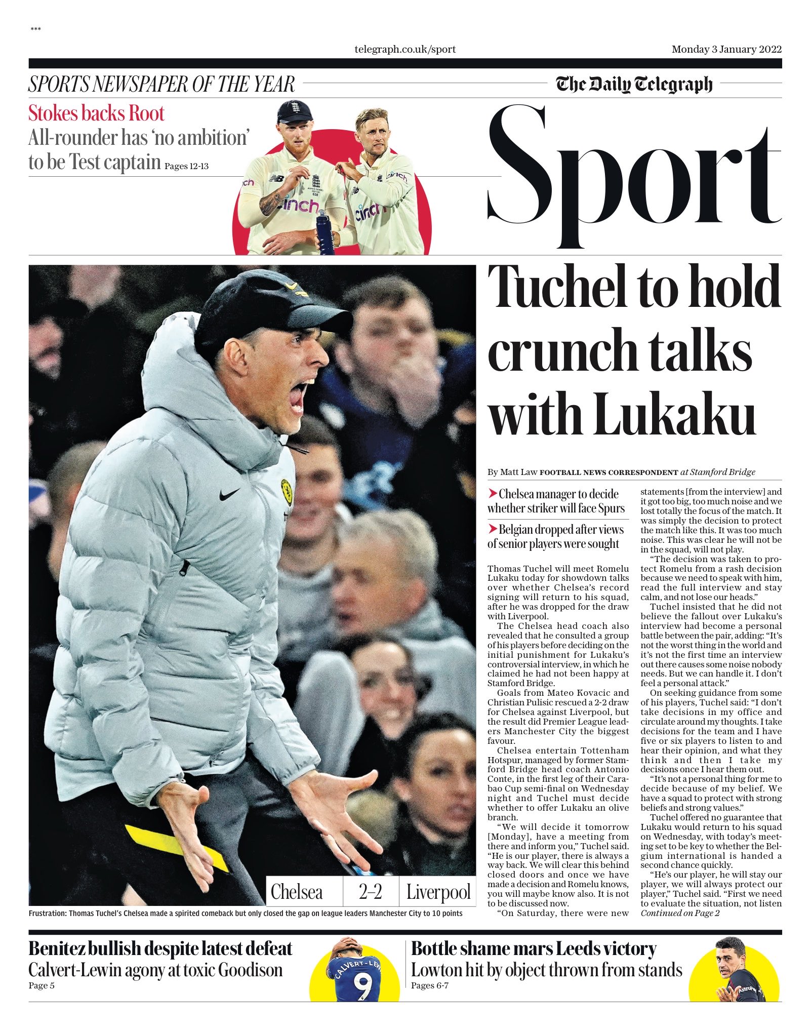 وكتبت ديلي تليجراف "توخيل يجري محادثات أزمة مع لوكاكو".