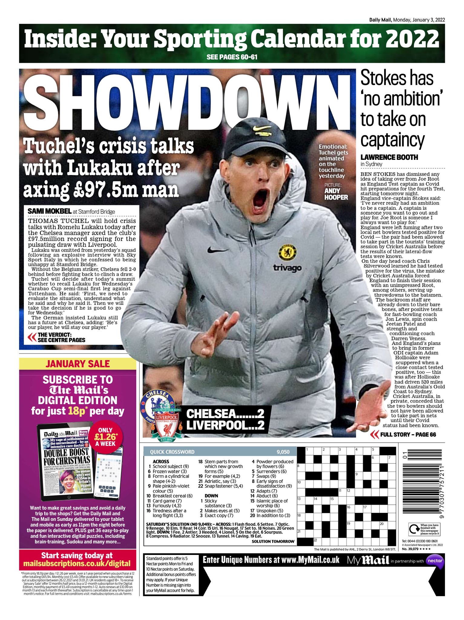 من جانبها، عنونت ديلي ميل "مواجهة.. محادثات أزمة لتوخيل مع لوكاكو بعد استبعاد اللاعب البالغ قيمته 97.5 مليون إسترليني".