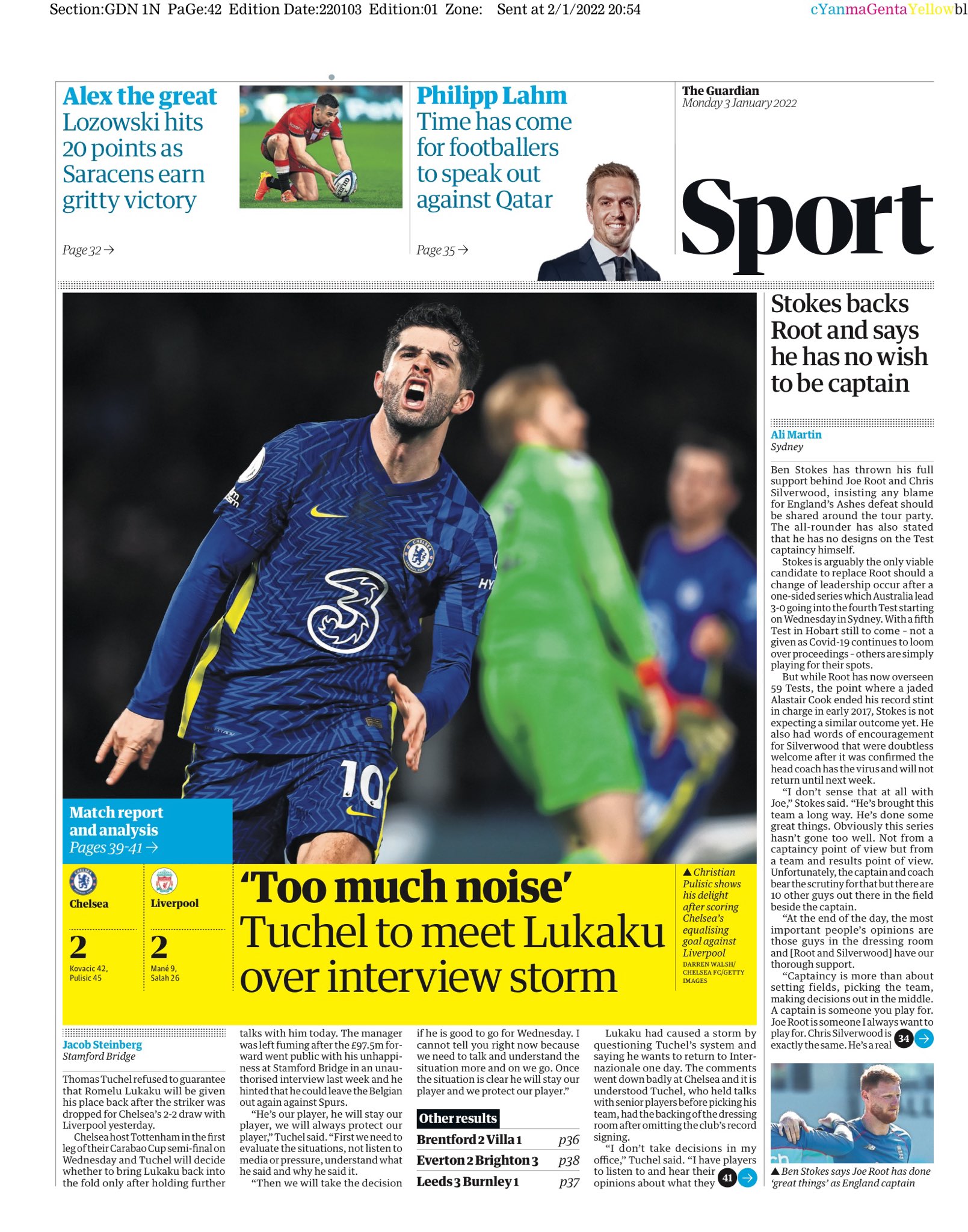 كما جرى تسليط الضوء على المقابلة المرتقبة بين مدرب البلوز ومهاجمه روميلو لوكاكو، بعد حوار اللاعب الذي تسبب في أزمة.