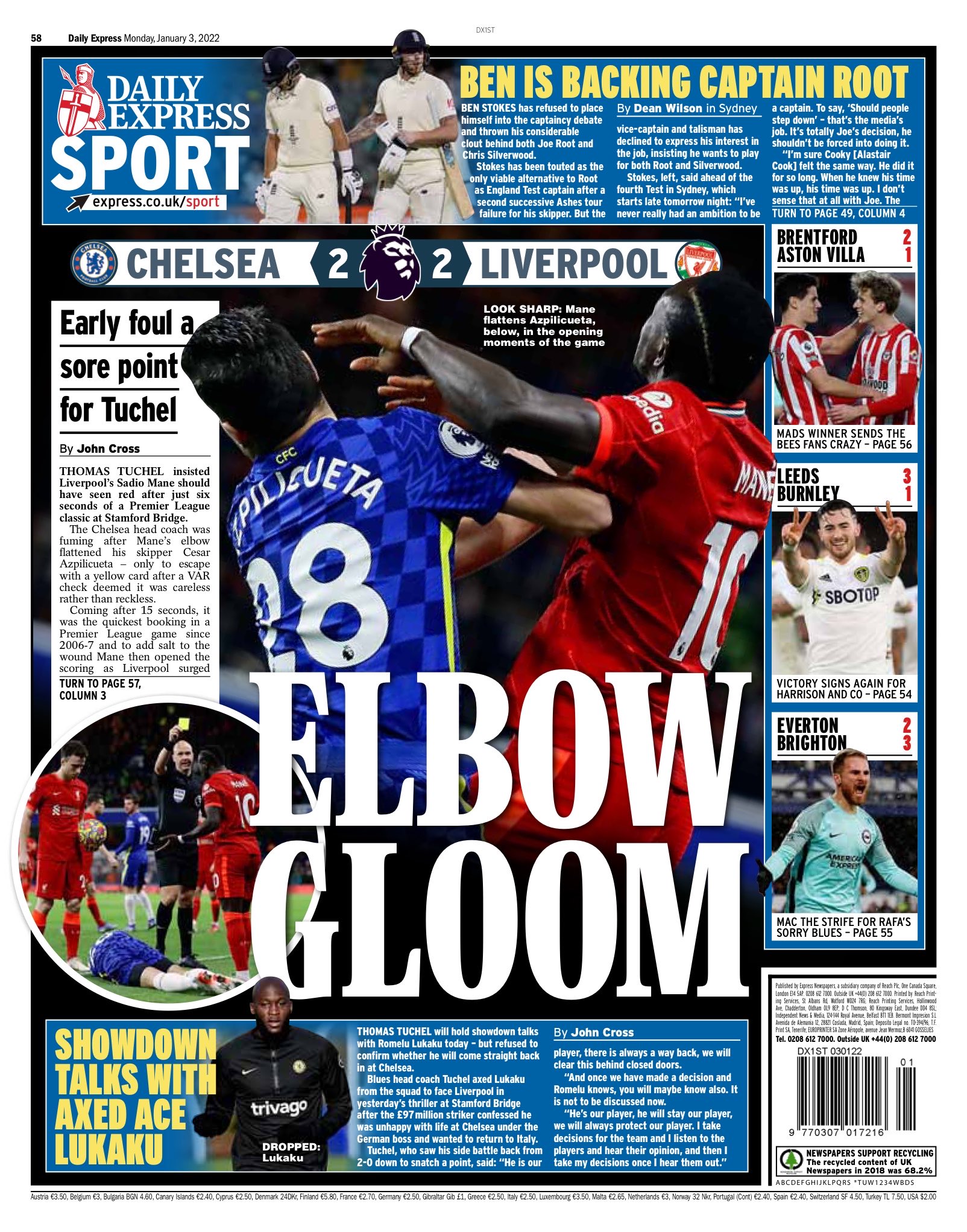 EPAاهتمت الصحف الإنجليزية الصادرة اليوم الإثنين، بغضب توماس توخيل وسيزار أزبيلكويتا، من عدم طرد ساديو ماني في تعادل تشيلسي وليفربول.