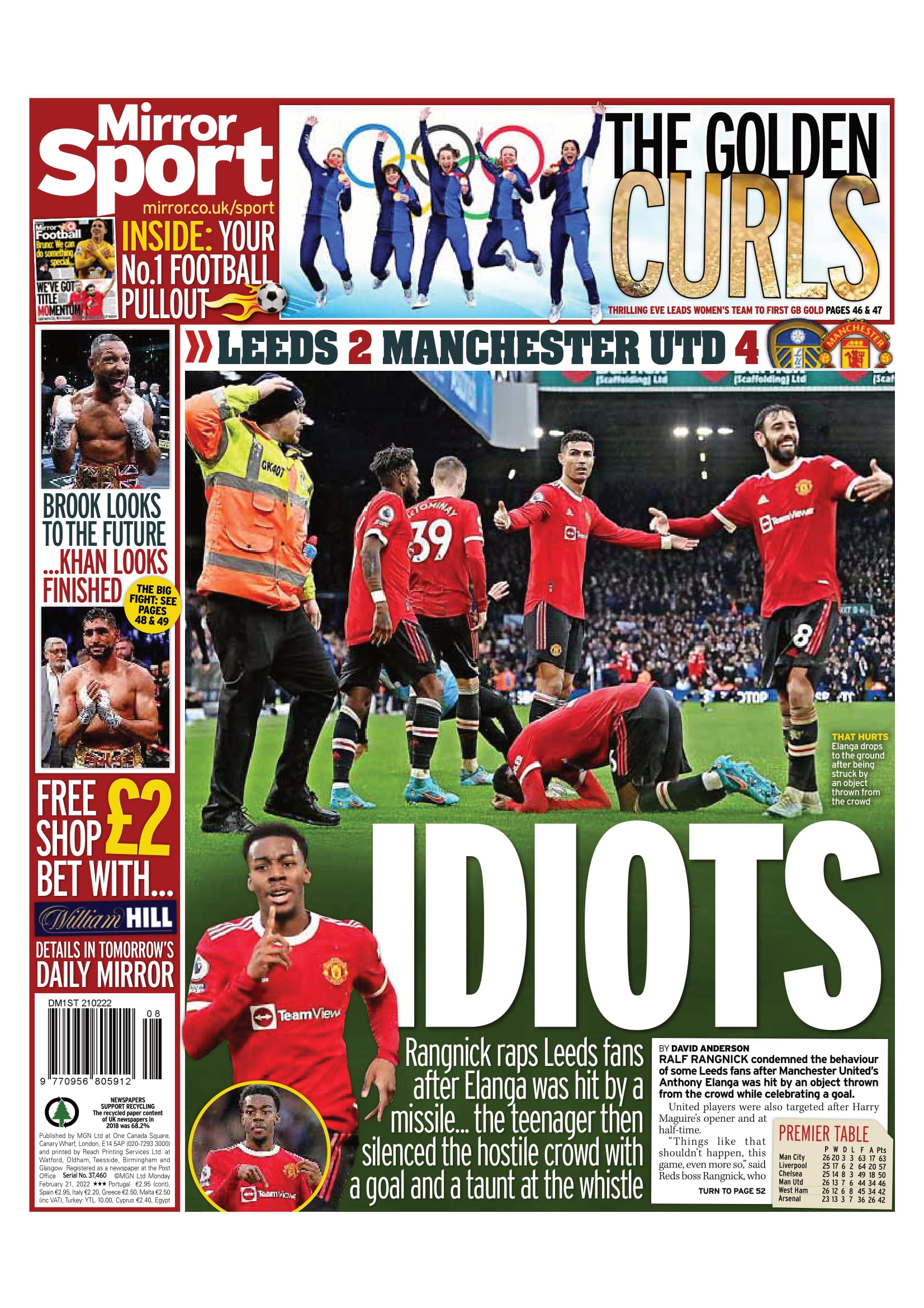 بدورها عنونت "ميرور": "حمقى.. رانجنيك يصفع مشجعي ليدز بعد اعتدائهم على إيلانجا.. والفتي المراهق يُسكت بعدها جماهير أصحاب الأرض بهدف، ويتهكم عليهم عقب الصافرة".