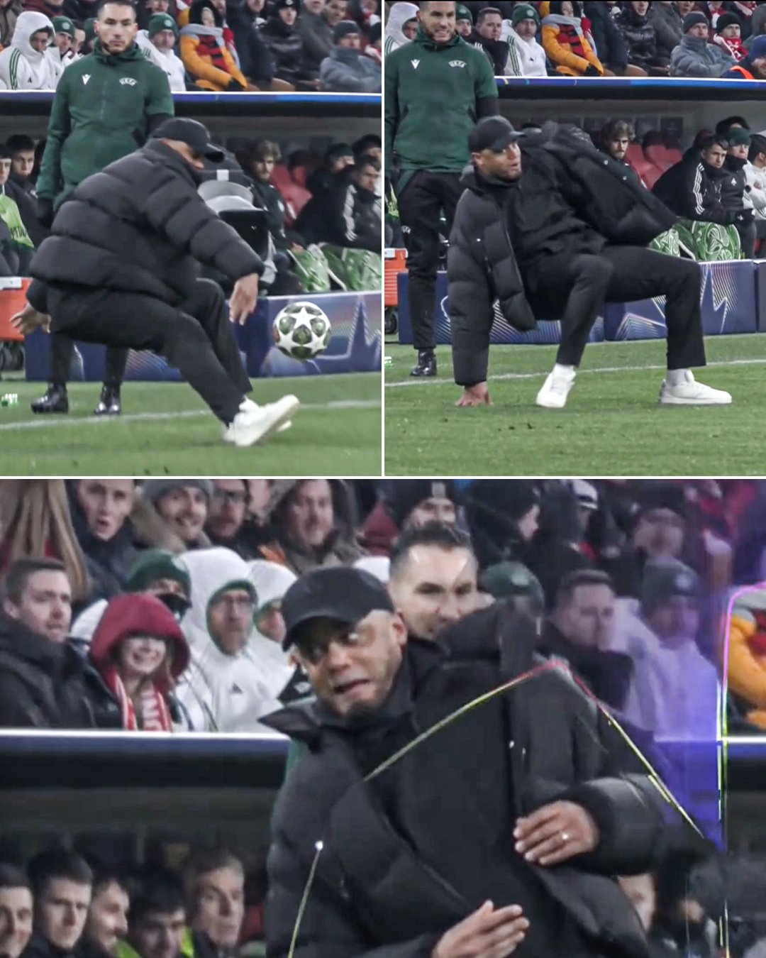 EPAشهدت مباراة بايرن ميونخ وضيفه سيلتك الإسكتلندي، في إياب الملحق المؤهل لثمن نهائي دوري أبطال أوروبا، لقطة طريفة لمدرب العملاق البافاري فنسنت كومباني، في محاولته للحاق بإحدى الكرات.